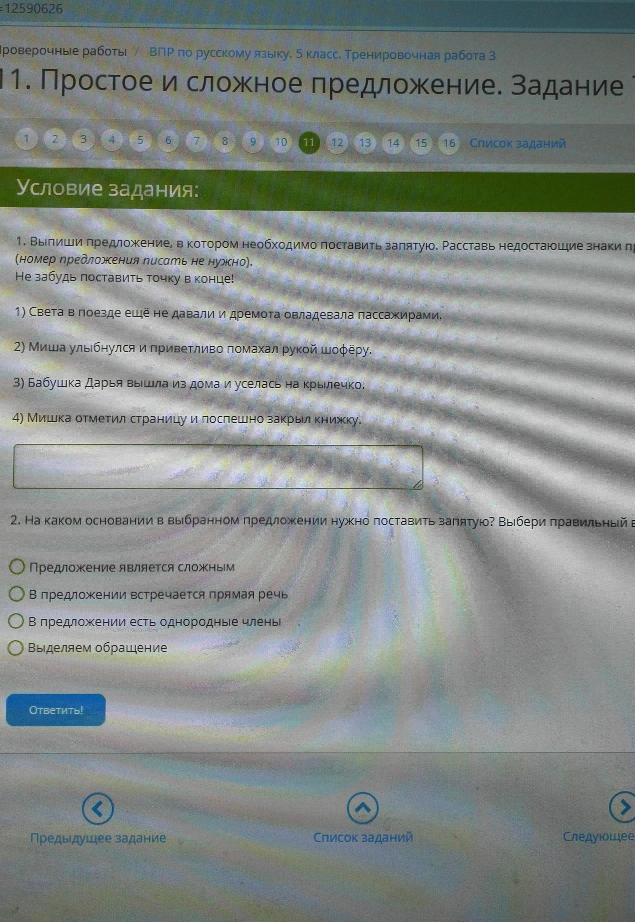 задание звучит так Выпиши предложения в котором необходимо поставить запятую Расставь недостающие знаки препинания номер предложения писать не нужно Не забудь поставить точку В конце 2 синица которая на каком основании В выбранном предложении нужно поставить запятую Выбери правильный вариант