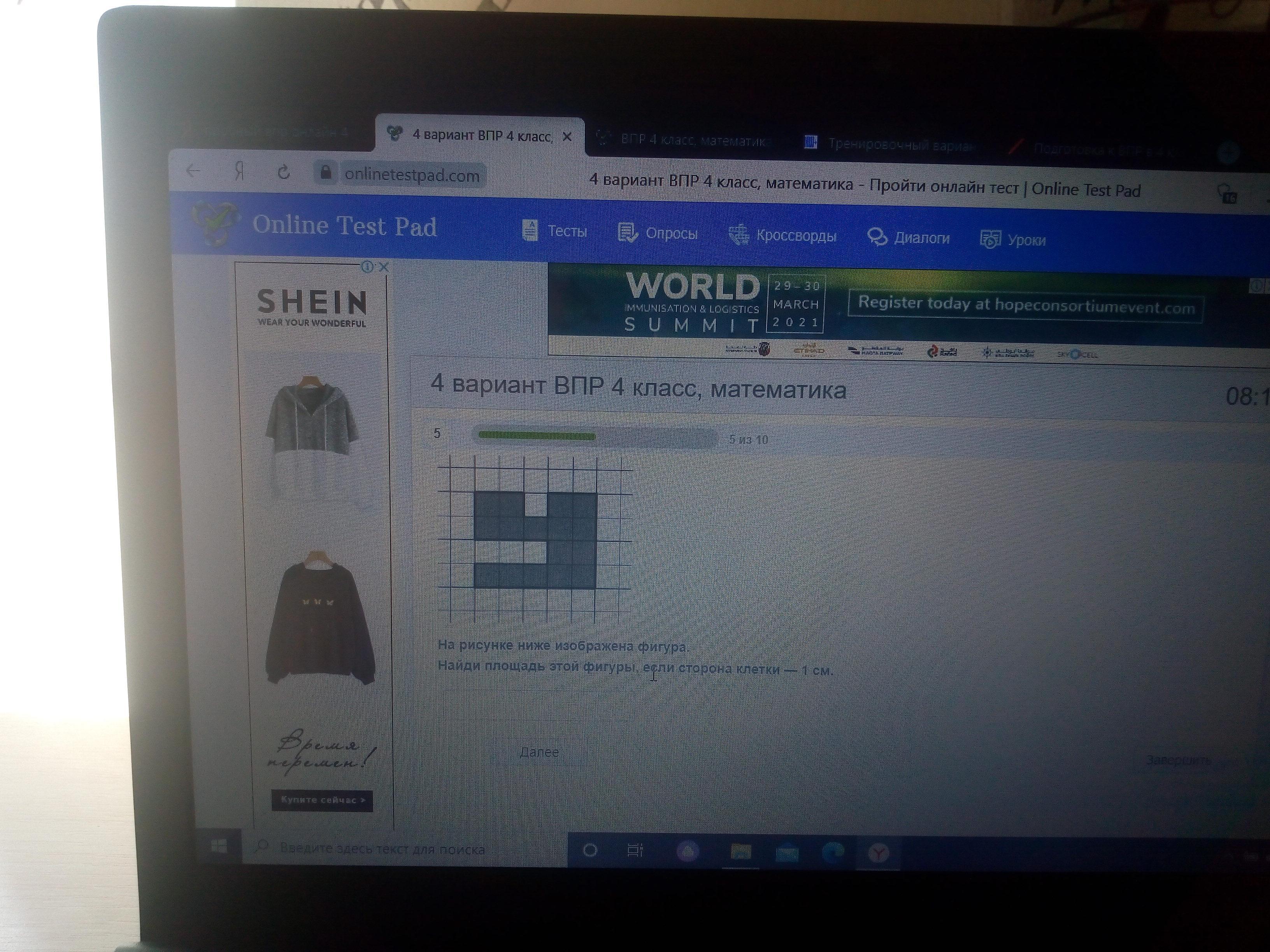 Найди площадь этой фигуры, если сторона клетки - 1 см.