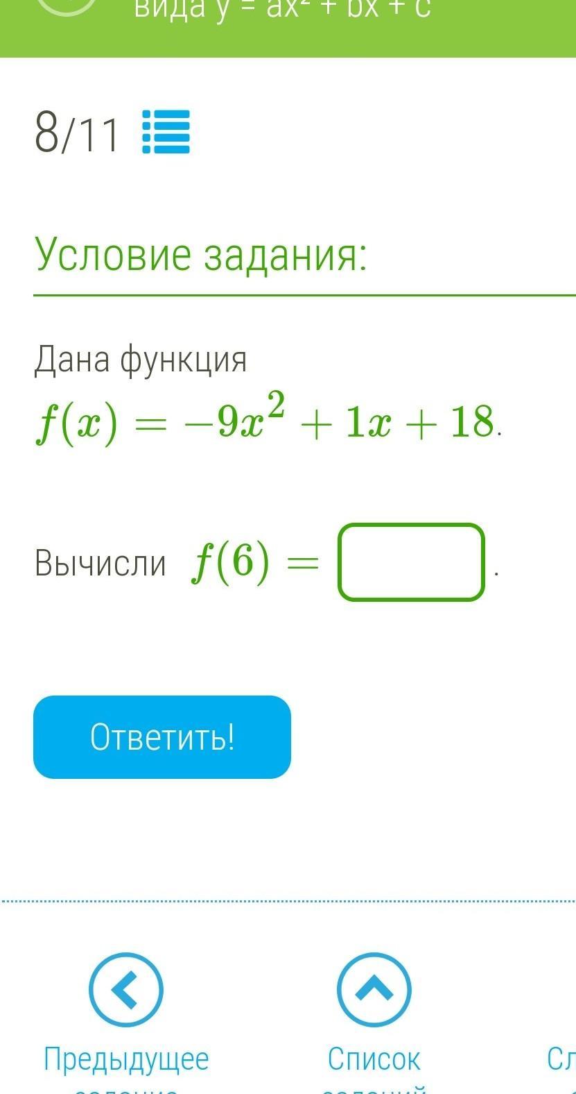f(6)= - 9×6^2+1×6+18= - 9×36+6+18=