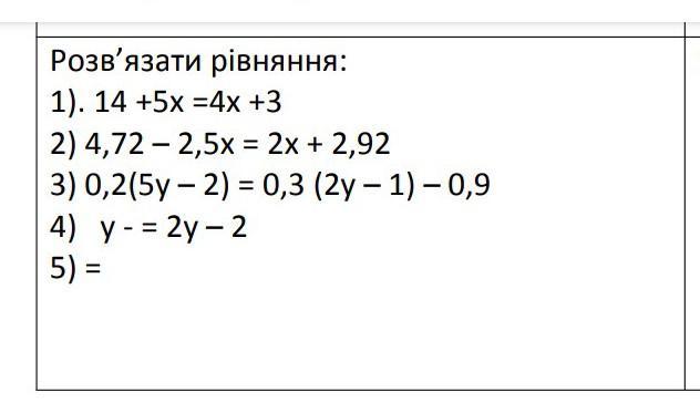3) 0,2(5y-2)=0,3(2y-1)-0,9