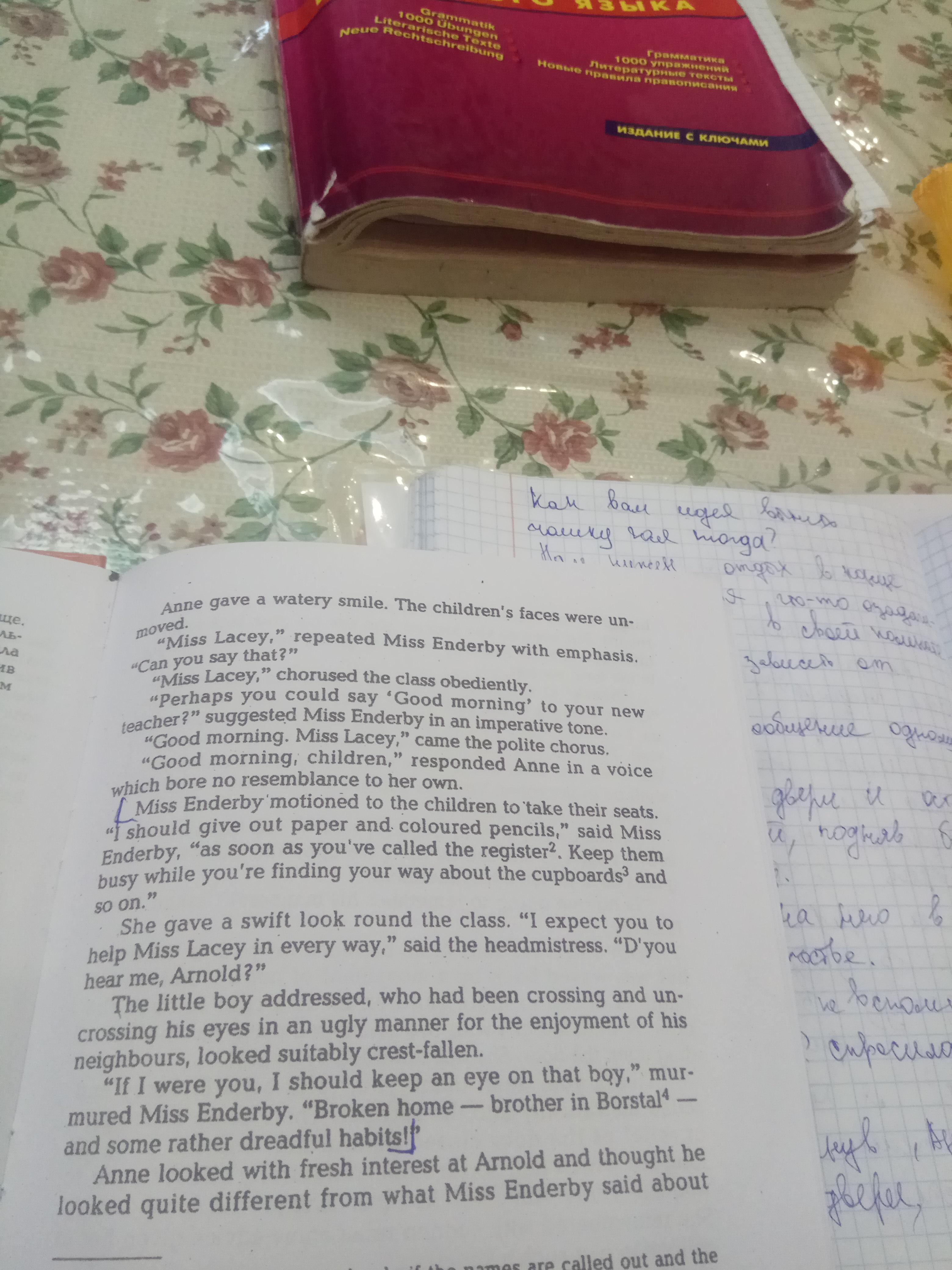 ЭНН ВСТРЕЧАЕТ СВОЕГО КЛАССАДети фиксированной их глаза на Энн. Энн смотрел обратно, чувство беспомощности.«Теперь, дети,'* начал Мисс Эндерби твердо, «ты очень, очень повезло этот термин для Мисс Лейси для вашего нового учителя.»Энн дал водянистые улыбкой. Лица детей были не тронуты.«Мисс Лейси,» повторил Мисс Эндерби с акцентом. «Вы можете сказать что?»«Мисс Лейси,» послушно chorused класса.«Возможно можно сказать доброе утро на ваш новый учитель?» предложила Мисс Эндерби крайне тоном.«Доброе утро. Мисс Лейси,"пришли вежливо хора.«Доброе утро, дети,» ответил Энн в голосе, которая родила не похож на ее собственную.Мисс Эндерби жестом детям занять свои места. «Я должна дать вне бумаги и цветные карандаши,» сказал Мисс Эндерби, «как только вы назвали регистра. Держать их занят в то время как вы найти свой путь о шкафах и так далее.»Она дала стремительный взгляд вокруг класса. «Я надеюсь, вам помочь Мисс Лейси в любом случае,» сказал директор. «Здравствуйте услышать меня, Арнольд?»Имя, маленький мальчик, который пересечения и снимите пересечения его глаза уродливые образом для осуществления его соседей, посмотрел, подходяще гребень упал.«Если я был вами, я должен держать глаз на что мальчик,» Мисс Эндерби mur-mured. «Broken дома — брат в борстальских — и некоторые довольно ужасно привычки!»Анна с свежим интересом посмотрели Арнольд и думал, что он выглядел весьма отличается от что Мисс Эндерби сказал о нем. Далеко слишком невинных и яблоко малый иметь такую запись. Но даже, как она выглядела, она увидела его розовый лицо выразить его презрение Мисс Эндерби, который давал ее окончательного сообщения к новым учителем.«Перерыв на 10-45, дорогие,» сказал директор. «Приходят прямо в комнату персонала. Я буду ждать там, пока вы присоединитесь к нам. Я представлю вам с теми, которые не отвечают на ваш первый визит. Как вам нравится идея иметь чашку чая тогда? Нам нужен отдых после всех. Если есть все, что вам загадки, я буду в моей комнате. Вы можете положиться на меня. Просто отправьте mes¬sage на один из детей».Она сделала ее путь к двери и ждали до него, брови, как она повернула ее взгляд на детей. Они смотрели в некоторое недоумение.«Никто будет помнить его манеры?» спросил Мисс Эндерби.Нервное начало Энн поспешил вперед к двери, но была помахал обратно движением руки её директриса. Десяток или более детей сделал пик, чтобы открыть дверь. Веснушчатый девушка с двумя тощий красный косичек был первым, чтобы перетащить открыть дверь. Она была вознаграждена с улыбкой.«Спасибо вам, дорогие, спасибо,» сказал Мисс Эндерби и величественно плавал в коридор. Там слабый вздох облегчения, как за ней закрылась дверь, и сорок шесть языков, которые до настоящего времени молчал неестественно начали бодро шутник. Энн смотрел это изменение с некоторыми тревогой. Она вспомнила с внезапной чрезвычайной помощи некоторые советы, дал ей в колледже в именно такой ситуации.«Стоять неподвижно, будьте совершенно спокойны, и постепенно chil¬dren станет сознавая, что вы ждете. Никогда не nev¬er попытка кричать им.»Так что Энн стояла ее землей, ждет болтать спадать. Но шум росло в объеме как разговоры стали более анимированные. Один или два детей побежал через комнату, чтобы увидеть их далеких друзей. Два мальчика нападали друг на друга. Ребенок с рождения отображение их красавицы восхищаться тол