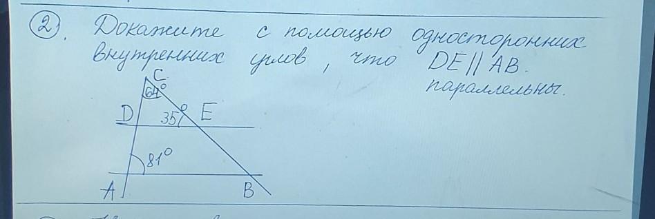 5) DE || AB по сумме односторонних углов, равной 180 градусам