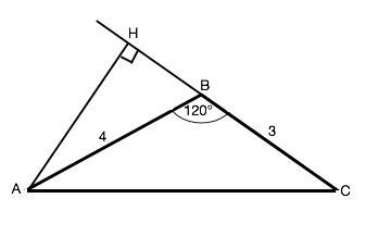 Назовём треугольник АВС, АВ=4 см, ВС=3 см, угол АВС=120°.