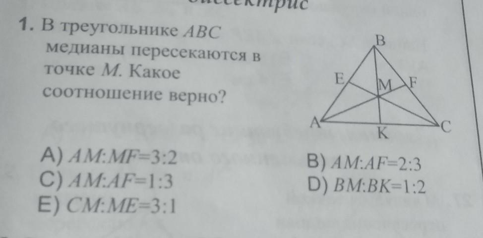 Точка пересечения медиан делит каждую медиану 1:2 где 1 это возле стороны а 2 возле угла. А дальше просто подумать. Книжку читать надо)))