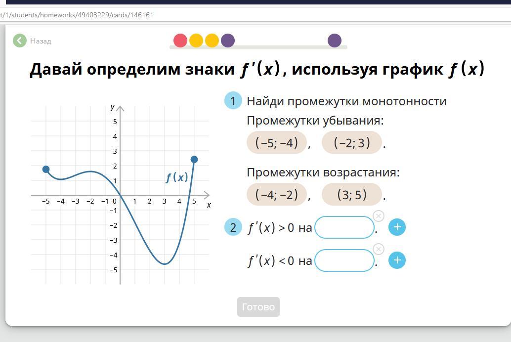 f'(x)>0 на (-4;-2) ,+ (3;5)