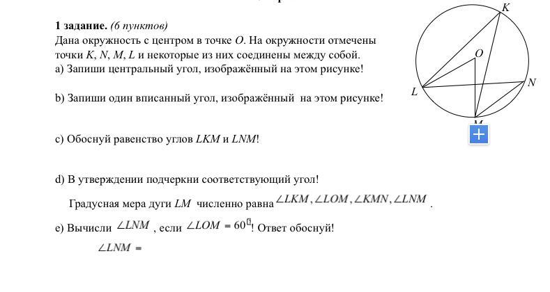 c)∠LKM=∠LMN, так как они опираются на одну дугу ∪LM