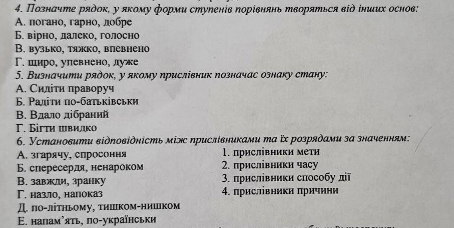 6. 1 - Г; 2- В; 3-Е; 4-А