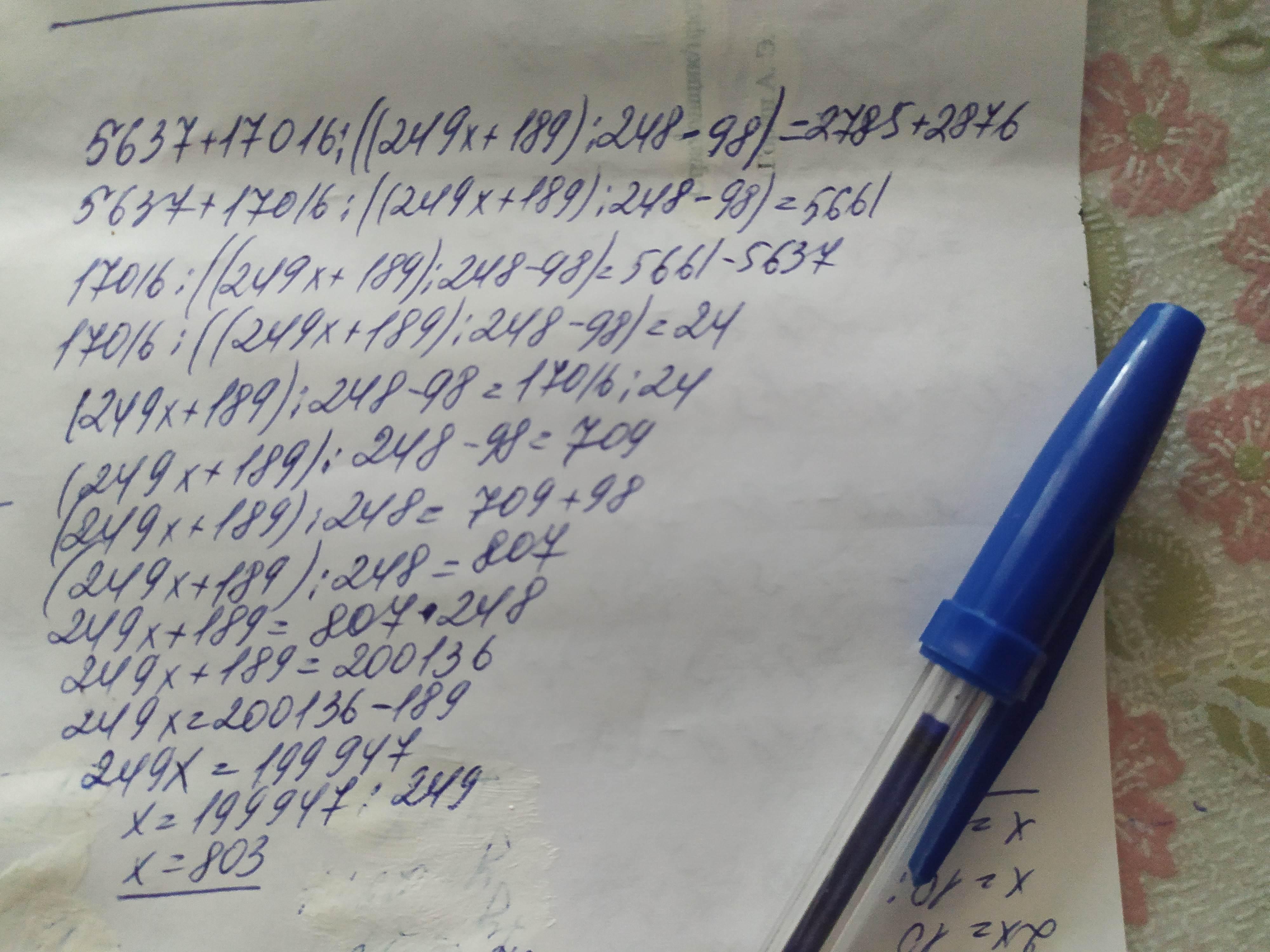 5637+17016:((249хХ+189):248-98)-2876=2785