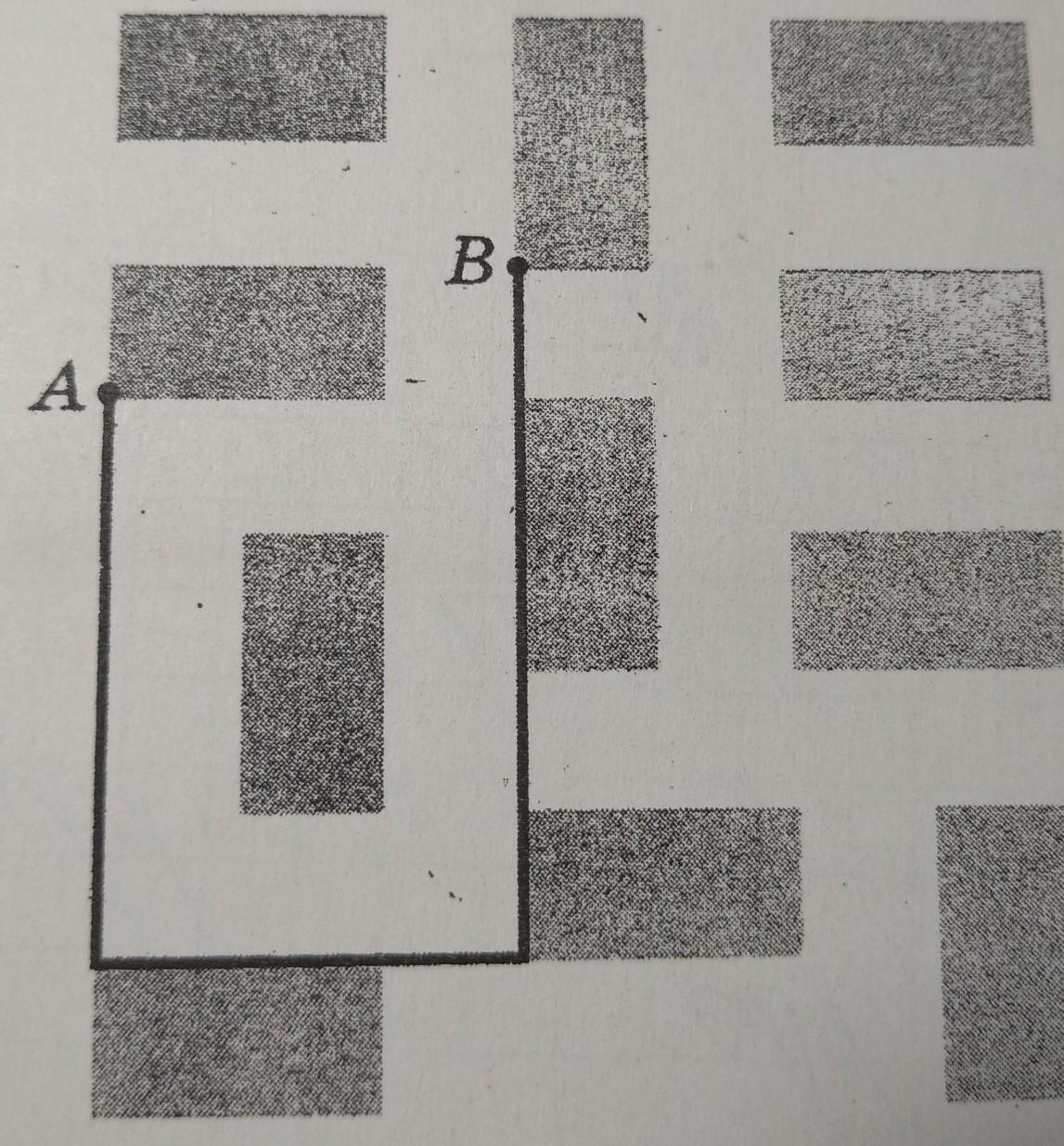 Найдите длину пути от точки А до точки В, изображённых на плане.