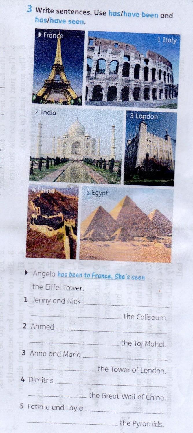 2)Ahmed has been to India. He is seen the Taj Mahal.