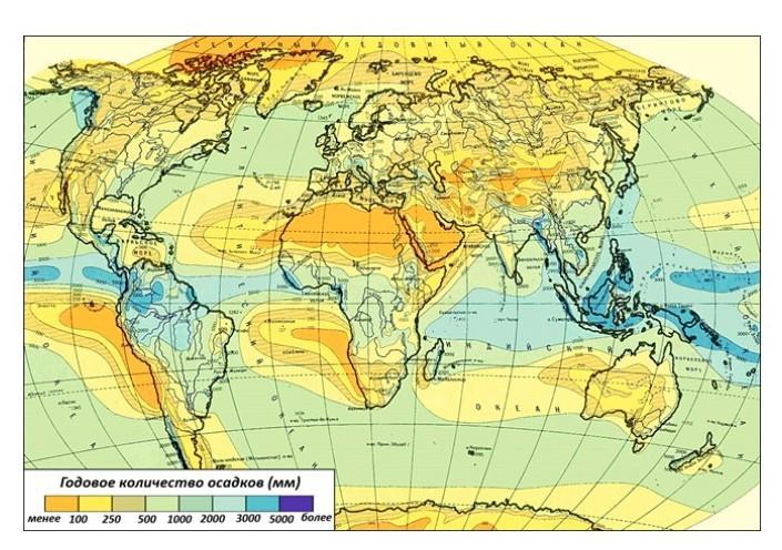 С помощью карты определи, на каком из перечисленных островов выпадает наибольшее количество атмосферных осадков.