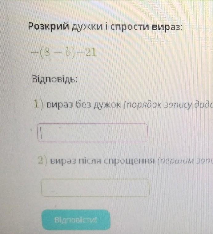 Жаль что я не знаю украинский язык. Но тебе я помогу. Зная закономерность открытия скобок, имеем: -8+b-21