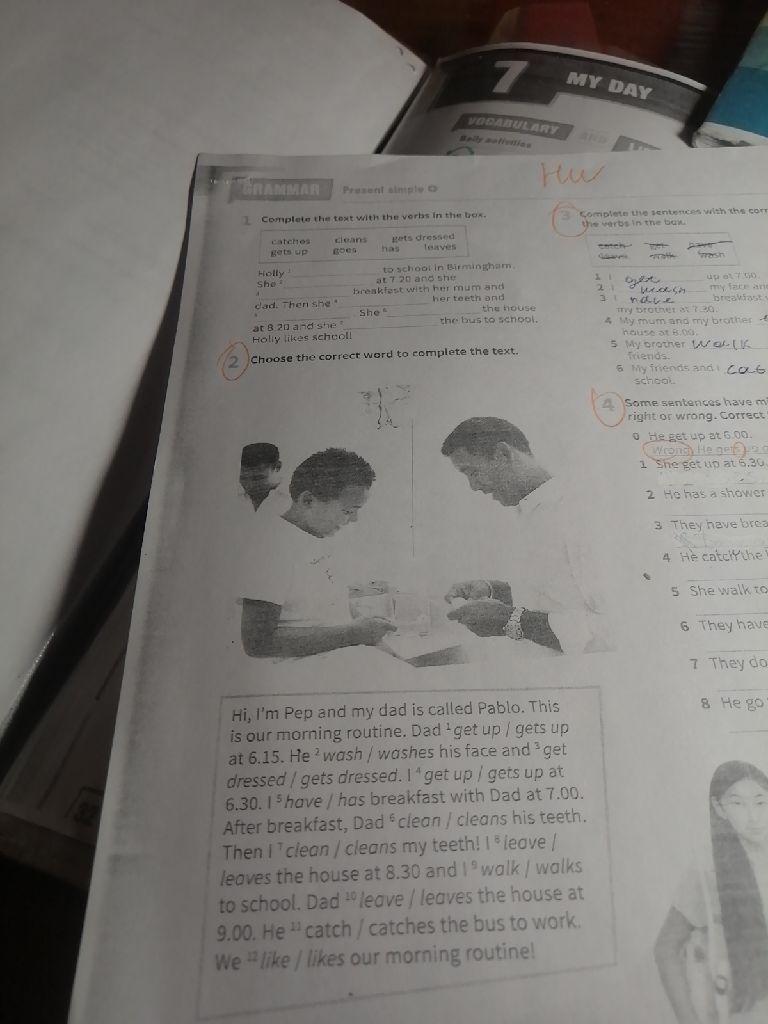 3. gets dressed
