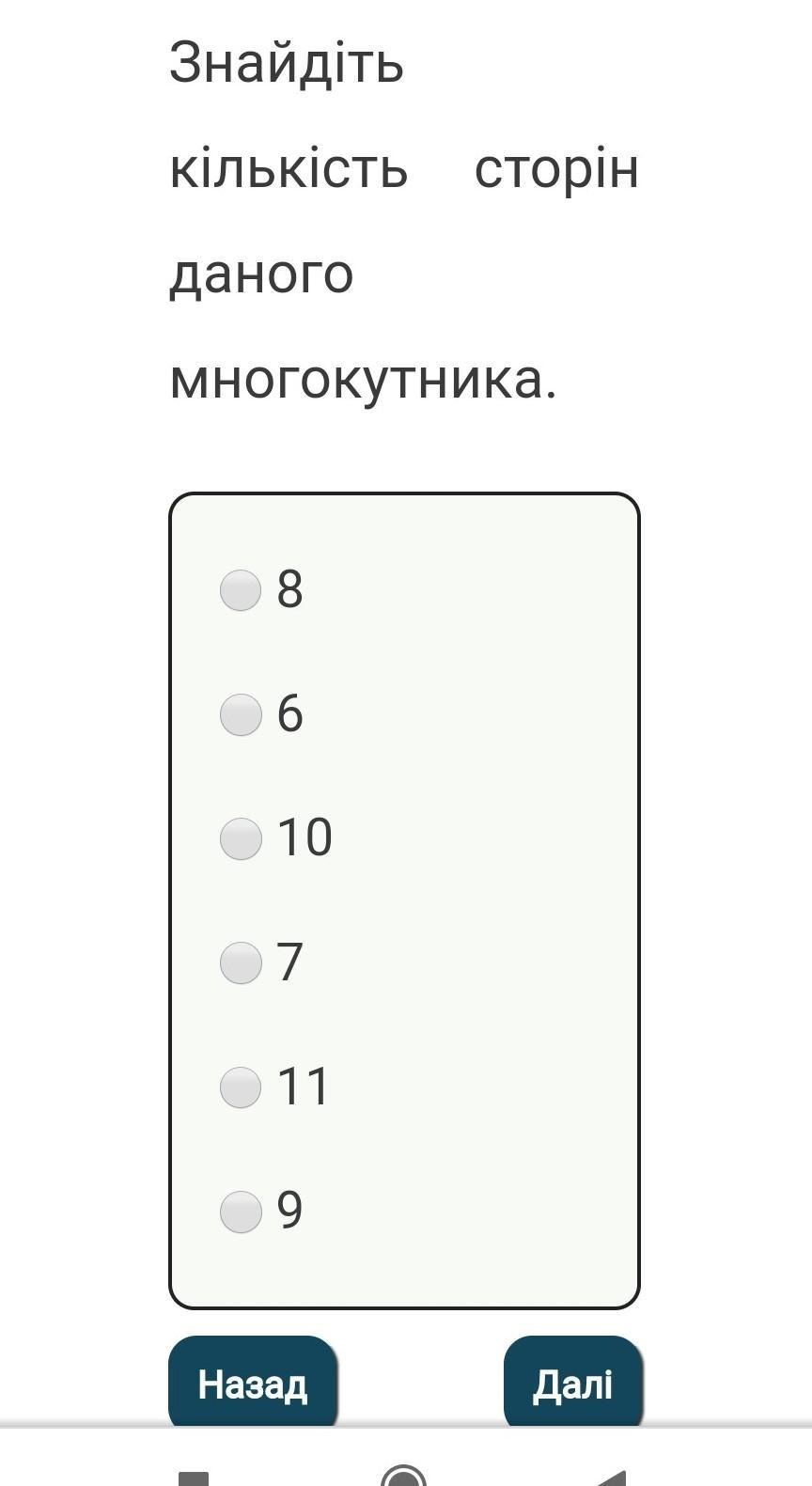 Кожен із зовнішніх кутів многокутника дорівнює 40°. Знайдіть кількість сторін даного многокутника.