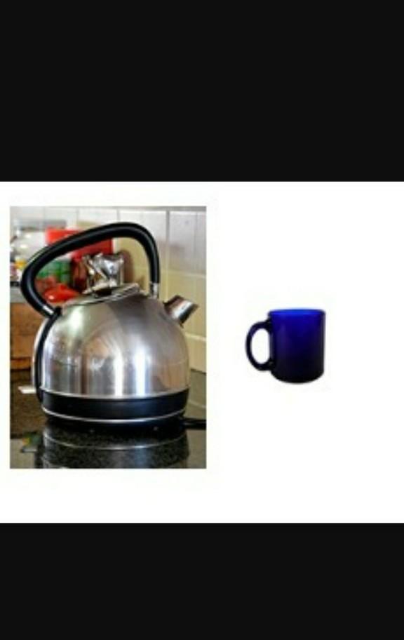 На рисунке видно, что чайник в 3 раза больше кружки (если учитывать ручку чайника)