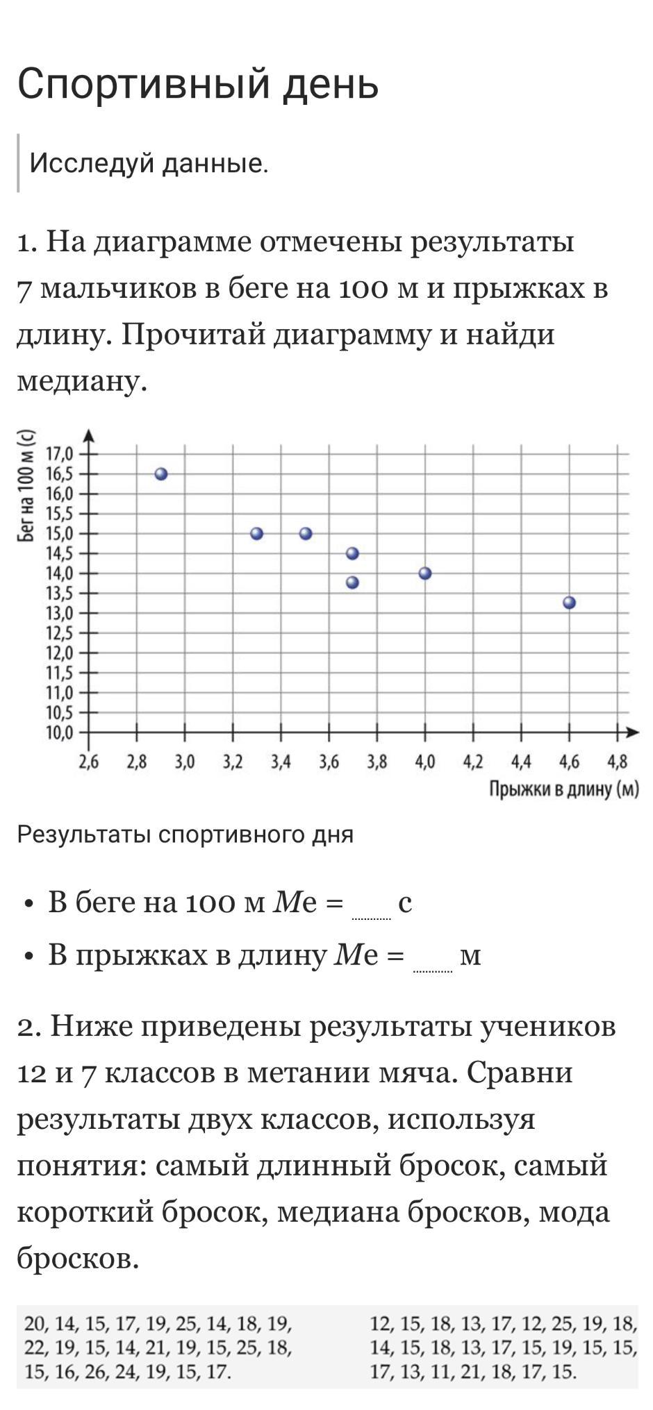 Ответ:#1 1)В беге на 100м Me=14.5c