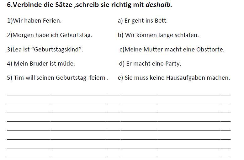 4. Mein Bruder ist müde, deshalb geht er ins Bett.