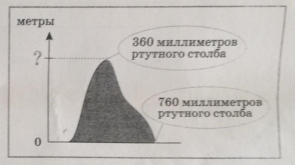 (2 рис.) Определите высоту горы, если известно, что у её подножия атмосферное давление равно 760 мм ртутного столба, а на вершине - 360 мм ртутного столба.
