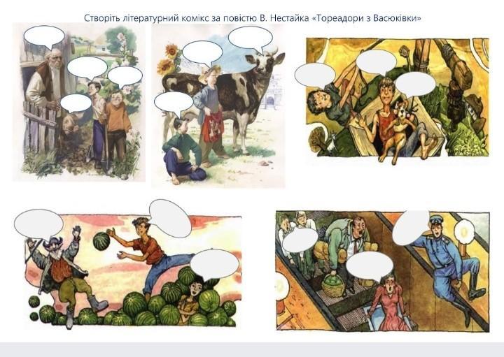 Возможно кто-то делал "Комікс до повісті Теодори з Васюківки"? Такой как картинка внизу. Напишите пожалуйста по очереди что должно быть в облаках, делаю вторую неделю. Если сможете ответьте до субботы - недели, если сможете раньше вообще круто. Ещё раз спасибо (6 клас )