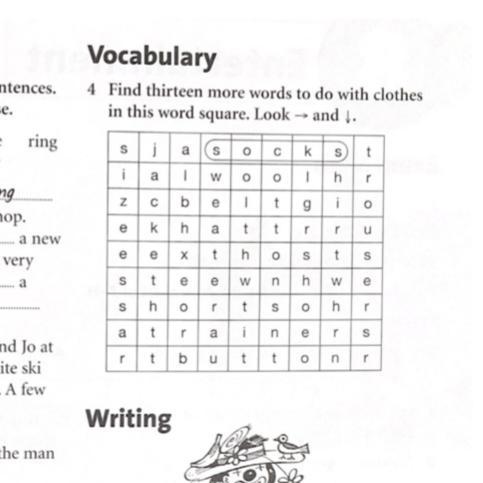 По горизонтали: wool, belt, hat, shorts, trainers, button.