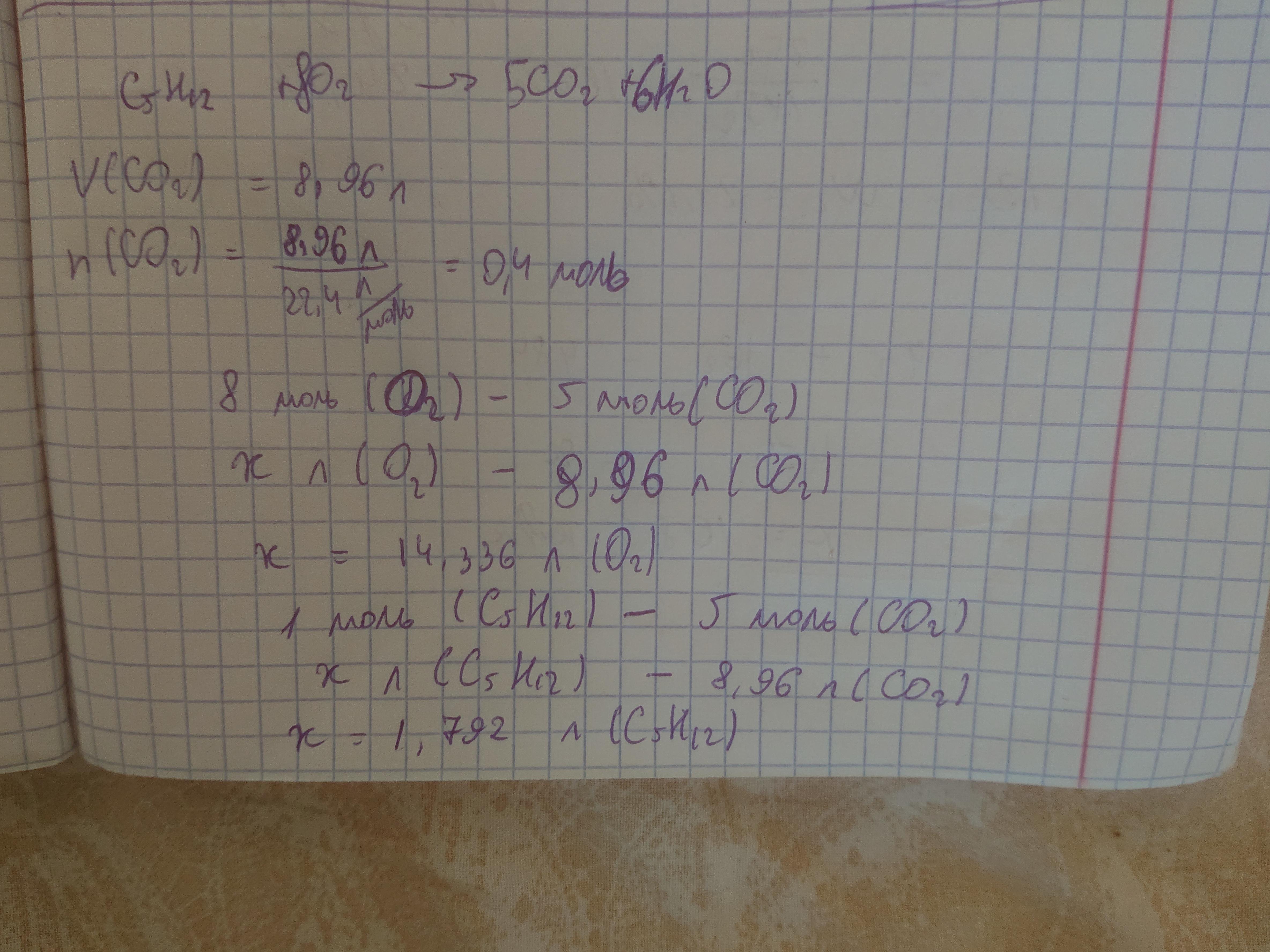13. При спалюванні пентану утворився вуглекислий газ об'ємом 8,96л.