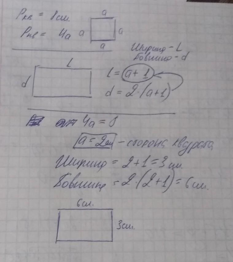 Периметр квадрата 8 см. Ширина прямокутника на 1 см дони