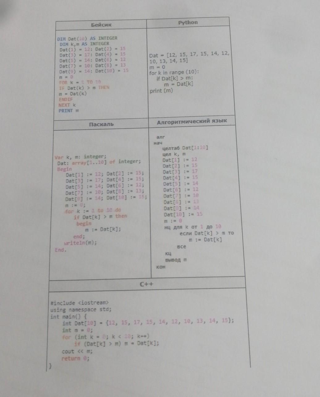 напечатано в результате работы следующей программы. Текст программы приведён на пяти языках