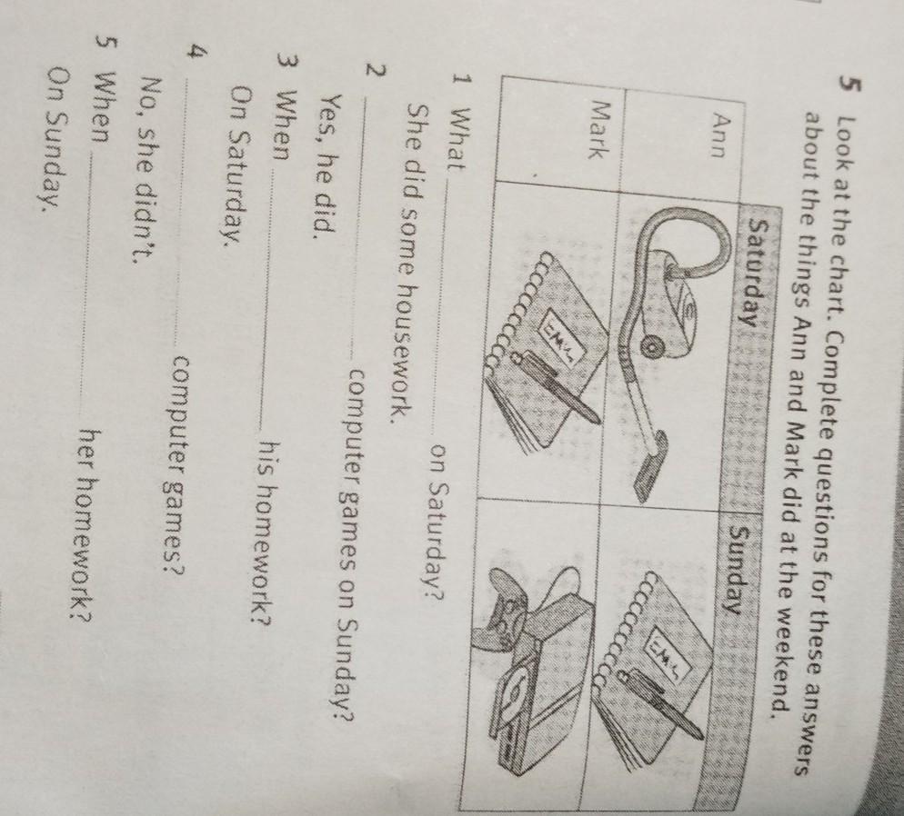 1) What Ann did 2) Did Mark play 3) When did Mark do 4) Did Ann play 5) When did Ann do