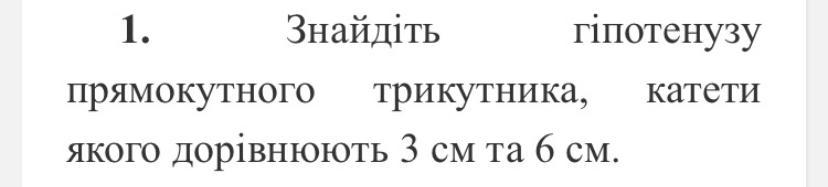 пусть даны катеты а=3 см и b=6 см тогда для нахождения гипотенузы получим