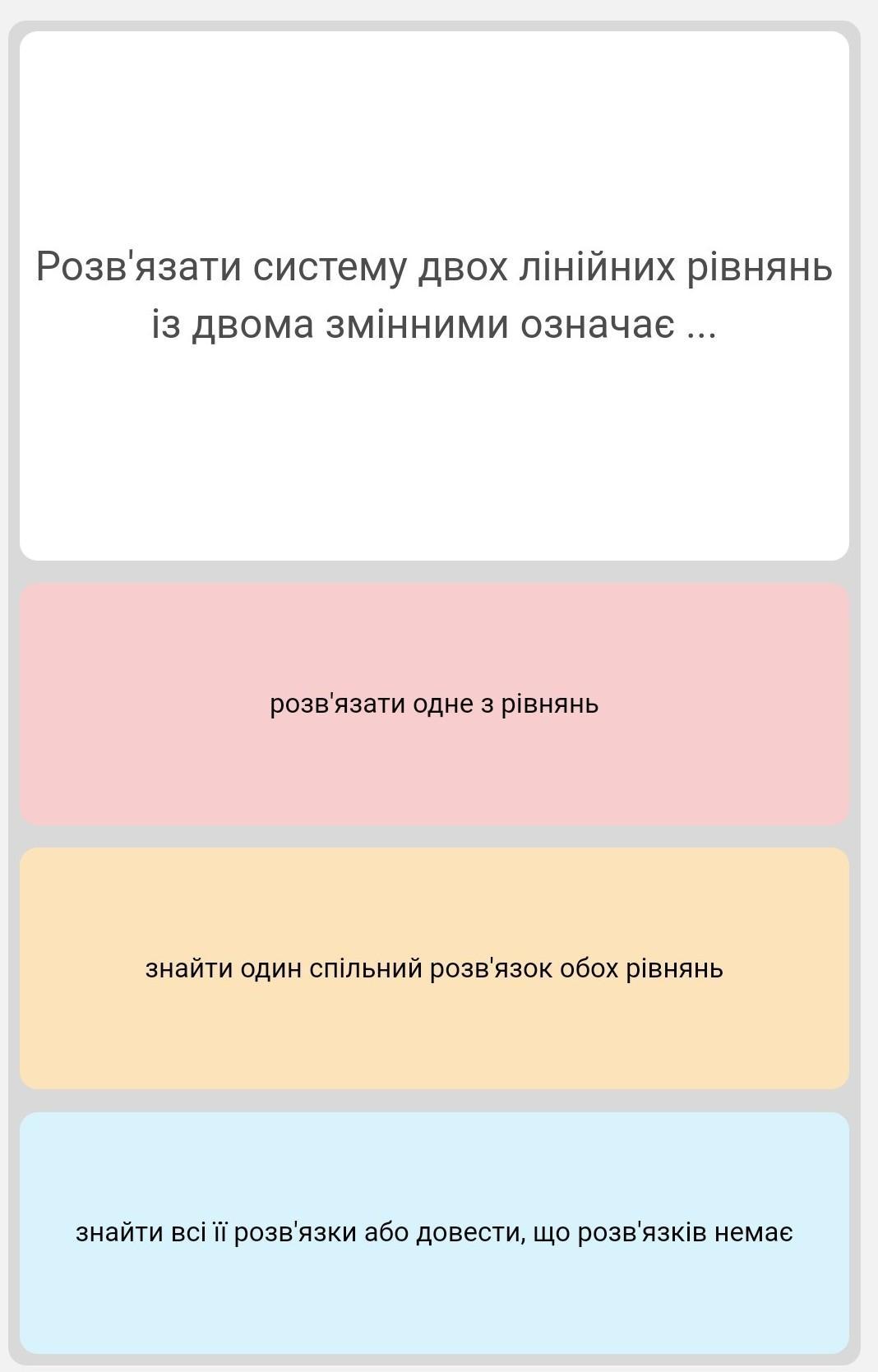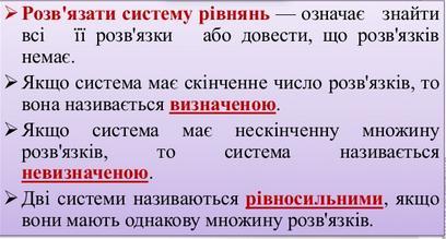 Розв'язати систему двох лінійних рівняннь із двома змінними означає знайти всі її розв'язки або довести , що розв'язків немає