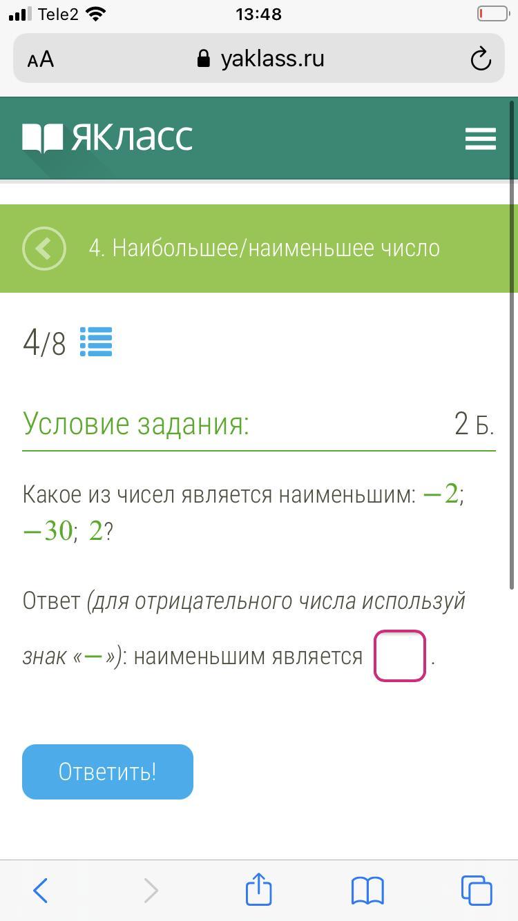 Ответ (для отрицательного числа используй знак «−»): наименьшим является .