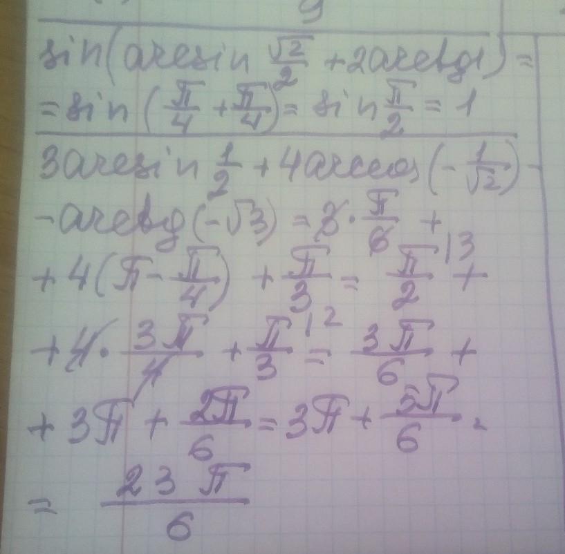3arcsin ½ + 4arccos (-1/√2) - arctg (-√3)