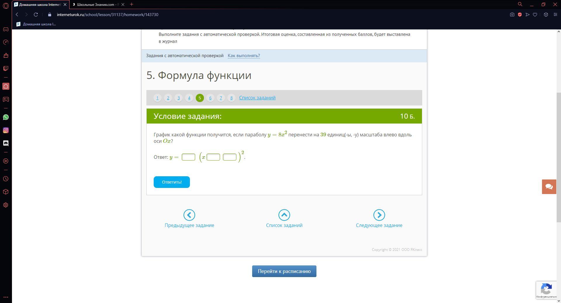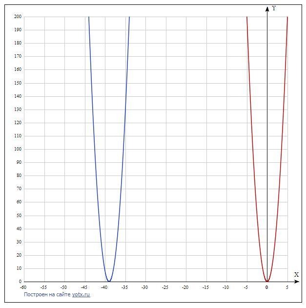 Это будет график точно такой же параболы , только сдвинут на 39 единиц влево по оси ОХ( синий график)