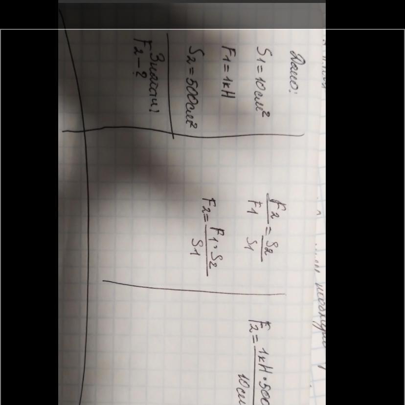 Площа поршня 10см квадратних сила 1 кН яку силу прикласти до великого поршня площа якого 500смкубічних?