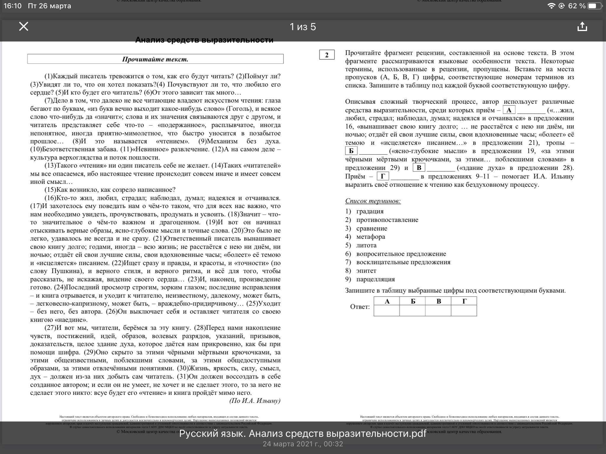 Вставьте на места пропусков (А, Б, В, Г) цифры, соответствующие номерам терминов из списка