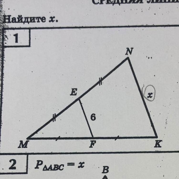 EF - средняя линия треугольник и равна половине параллельной стороне NK. Значит NK = 2EF = 2*6=12.