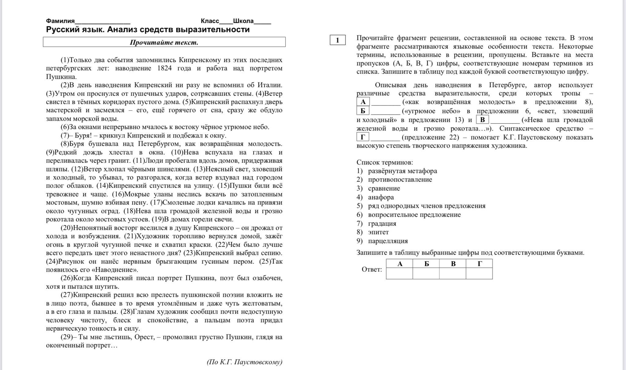 Вставьте на места пропусков (А, Б, В, Г) цифры, соответствующие номерам терминов из списка