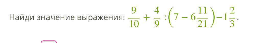 9\10+4\9 делить на (7- 137\21) - 5\3= 9\10+4\9 делить на10\21 - 5\3= 9\10+2\3 умножить 7\5-5\3 = 9\10+ 14\15-5\3 = 1\6