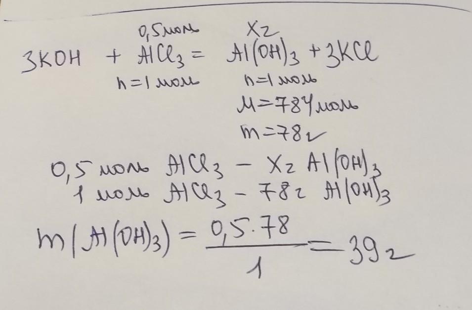3KOH+AlCl₃→ 3KCl+Al(OH)₃↓