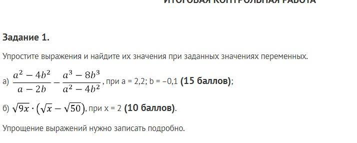 Формулы сокращённого умножения и вынесение за скобки общего множителя