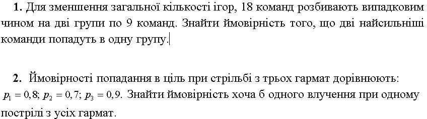 2. Ймовірність, що жодна гармата не влучить в ціль = (1-0.8)×(1-0.7)×(1-0.9)=0.2×0.3×0.1=0.006