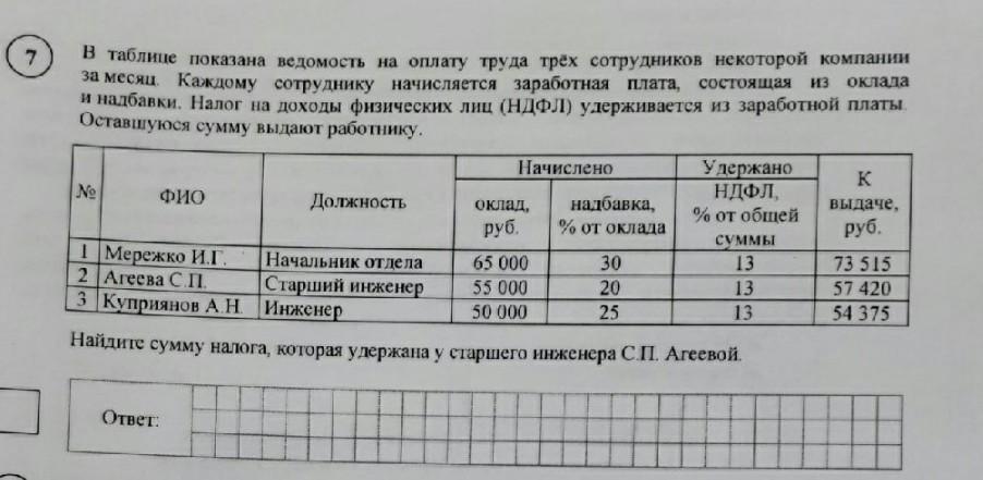 найдите сумму налога удержана у старшего инженера С.П Агеевой