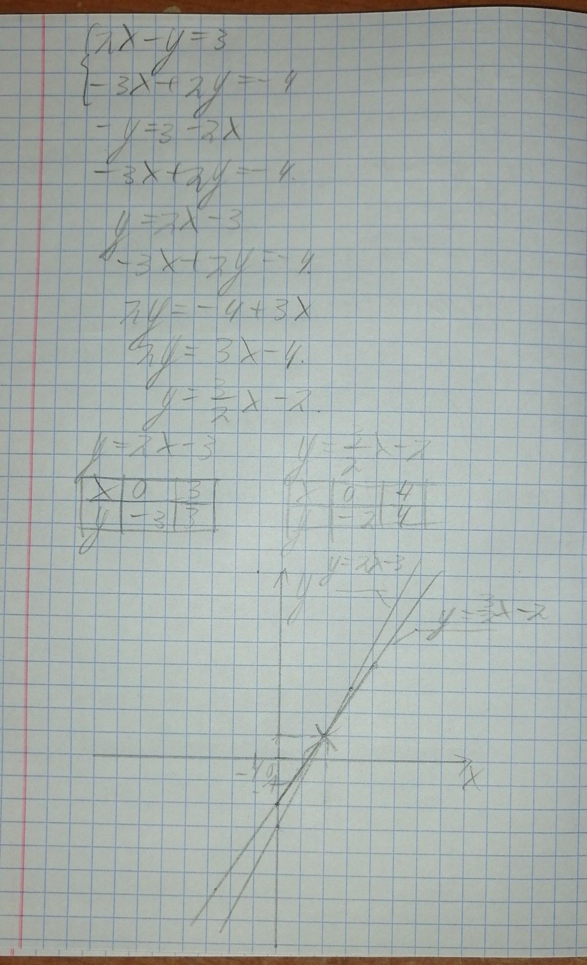 Построить графики. Графики линейной функции, прямые линии. Придаём значения х, подставляем в уравнение, вычисляем у, записываем в таблицу. Для построения прямой достаточно двух точек, для точности построения определим три.