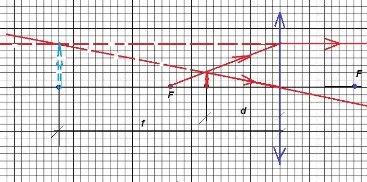 Предмет стрелка расположен перпендикулярно главной оптиеской оси на расстоянии 10см тонкой собирающей линзы с f=15см. Вычислите на каком расстояние и какого типа будет изображение предмета, представьте схематический рисунок построения изображения