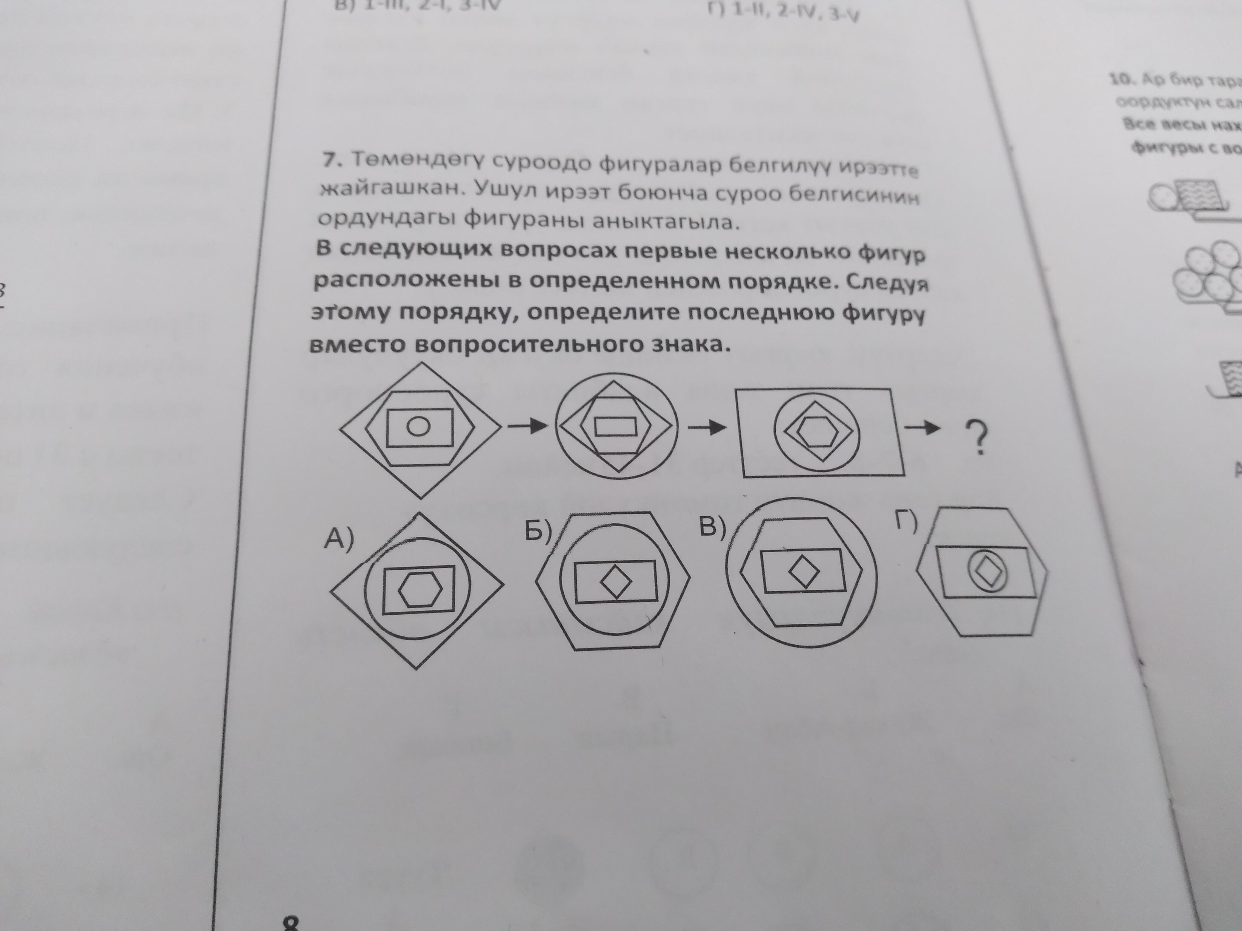 В следующих вопросах 1 несколько фигур расположенных в определенном порядке следуя этому порядку Определите последнюю фигуру вместо вопросительного знака