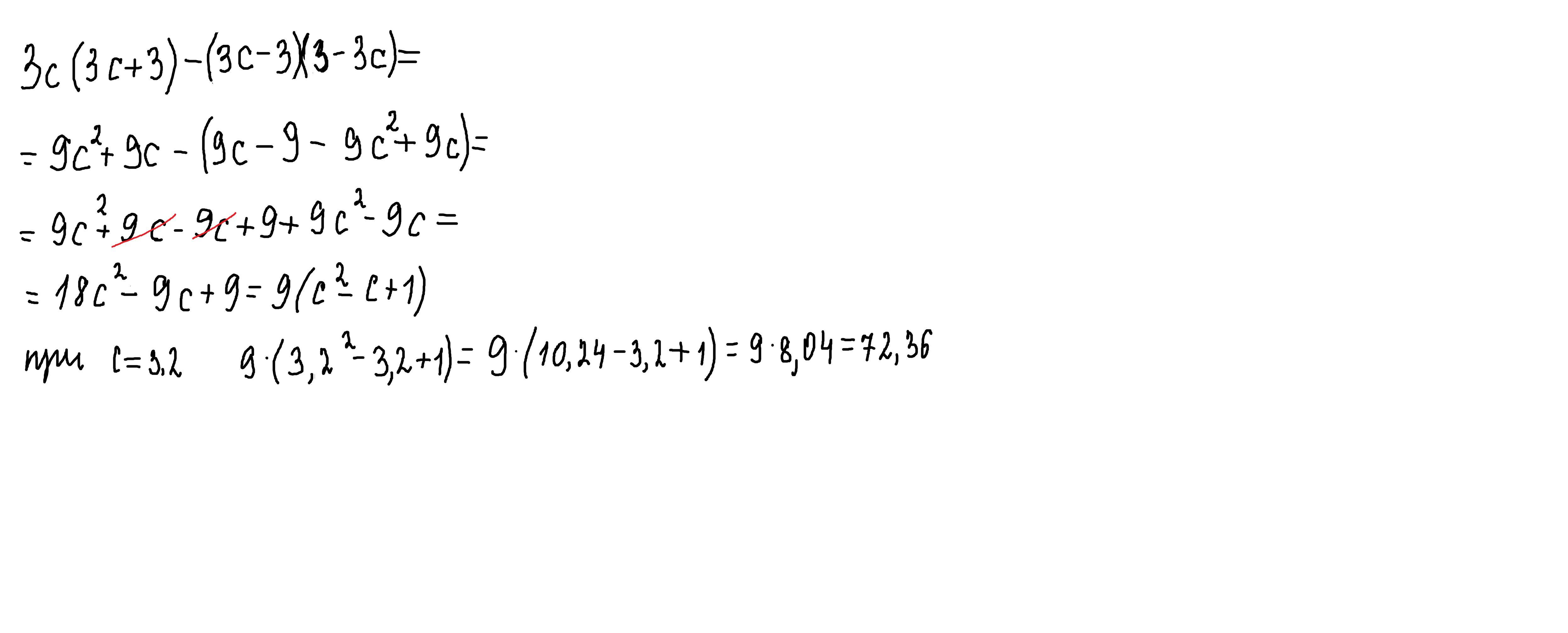 Зc(3c + 3) - (Зc — 3) (3 - Зc) при с=3,2