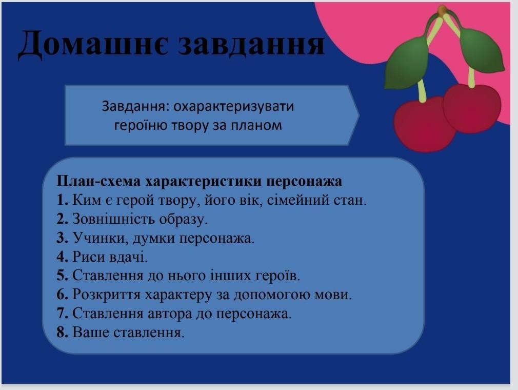 Відповідь: 1) Софійка - головна героїня твору, котра кохає Вадима Кулаківського, але в кінці твору побачивши майбутнє буде з своїм товаришем ( в теперішньому часі )Сашком. Вік 12-13 років( адже ходить в 7 клас ). Сімейний стан : дитина ( має батьків, брата Ростика, тітоньку Сніжану й інших родичів )