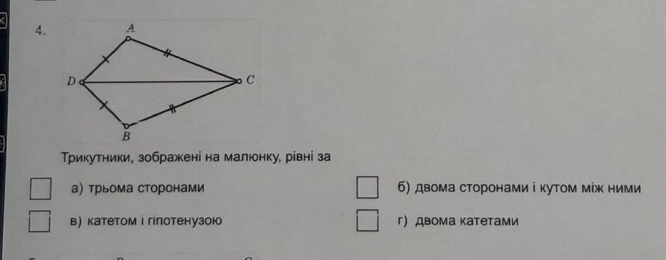 Ответ а - трём сторонам, тк DC - общая, а AD=BD и AC=BC есть в условии)