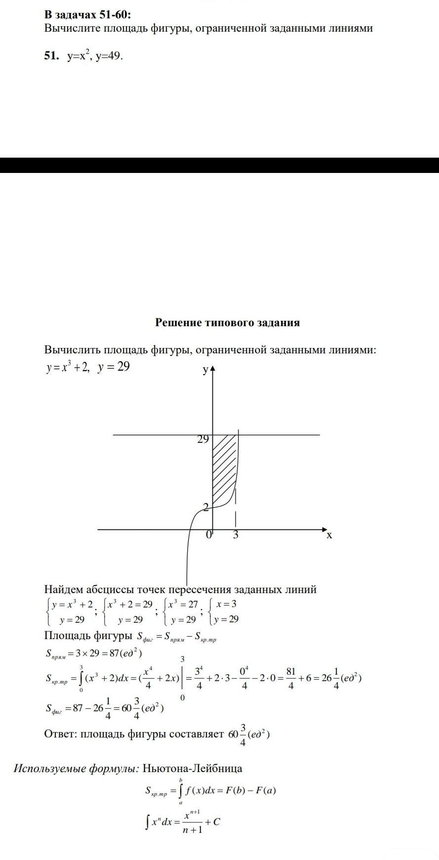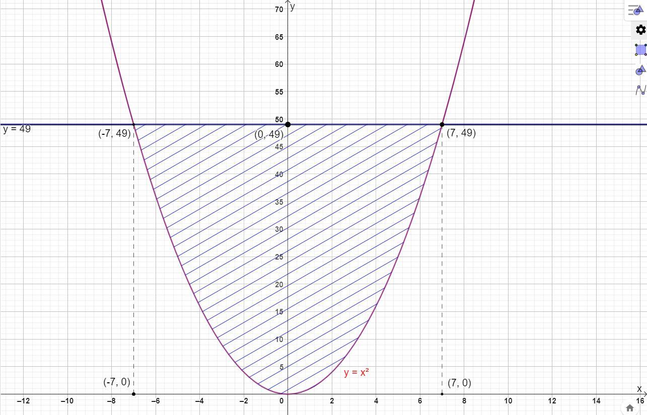 Площадь фигуры будет равна разности площади прямоугольника под прямой y = 49 и под параболой y = 49 в пределах от -7 до 7.