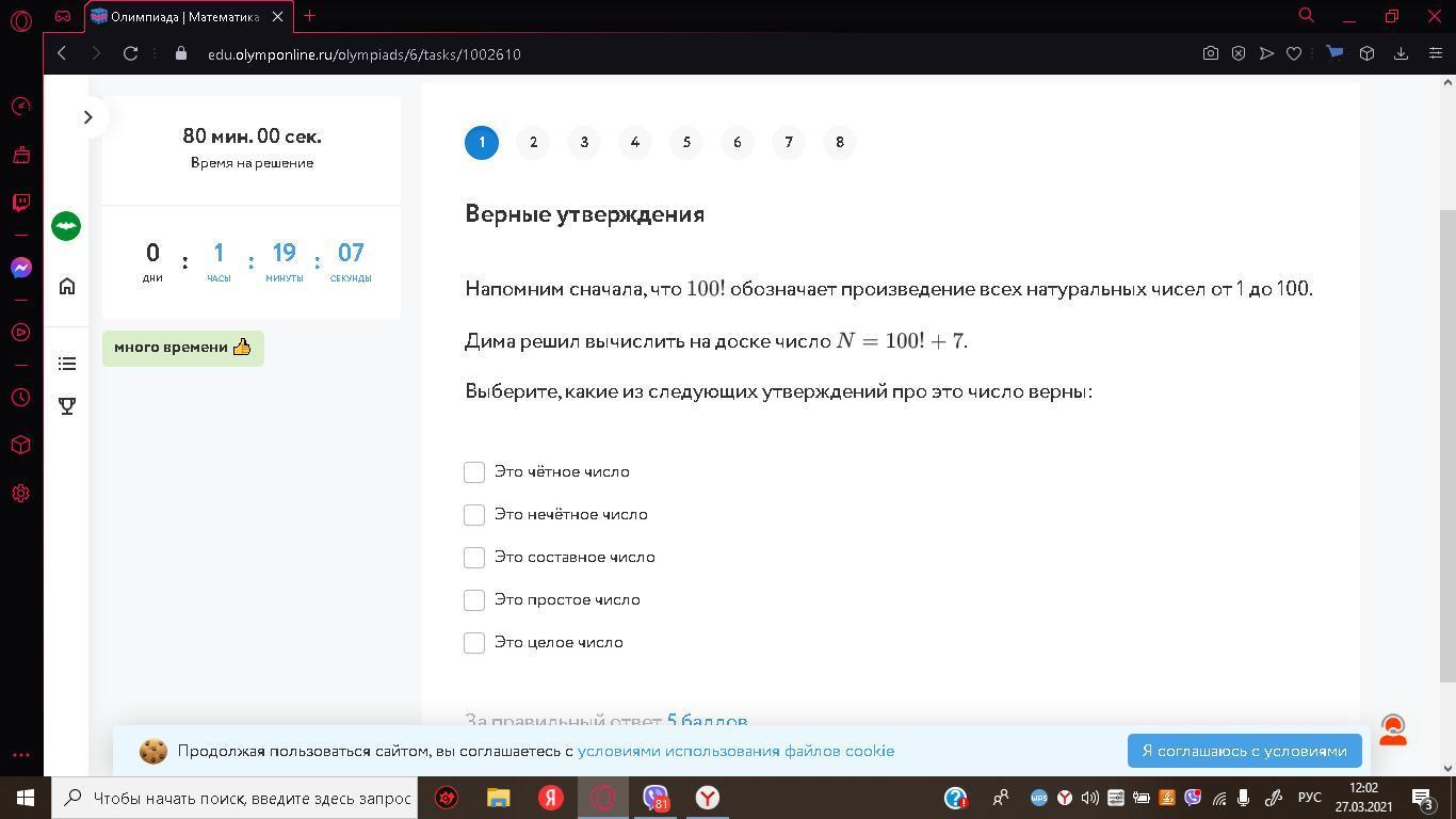 100 ! - это число, оканчивающееся на ноль. Если к этому числу прибавить 7, то получим :